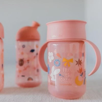– Tasse 360° : l’enfant peut boire sur tout le pourtour de la tasse.